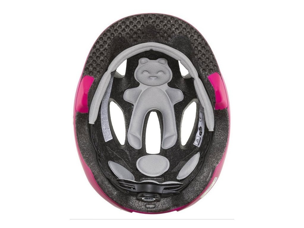Komfort 10 větracích otvorů , snímatelné antialergická vycpávky ve tvaru medvěda , síťka proti hmyzu ve ventilačních otvorech helmy , hmotnost  od230g.